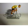 Cycliste Starlux coureur sprintant tête nu maillot Jaune avec rayures