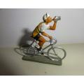 Cycliste Starlux coureur buvant bidon maillot jaune avec rayures