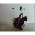 CAVALIER AVEC PORTE ORIFLAMME CHEVAL A ROBE BLEU FONCÉ SOCLE PELOUSE