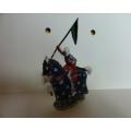CAVALIER AVEC PORTE ORIFLAMME CHEVAL A ROBE BLEU FONCÉ SOCLE PELOUSE STARLUX MOYEN ÂGE
