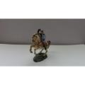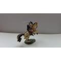 CHEVALIER AVEC ÉPÉE, CAPE ET BOUCLIER CHEVAL BLANC CABRÉ SOCLE PELOUSE