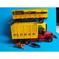 GMC CIRQUE PINDER DINKY TOYS MODELE TRES PROCHE DU NEUF GARANTIE COMPLET ET 100 % D'ORIGINE ANIMAUX ET ACCESSOIRES .LEGERS FROTEMENT SUR ARRIERE DE LA CAGE A FAUVES (VOIR PHOTOS MACRO) TOIT DE LA REMORQUE A FAUVES SANS AUCUNE