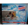 GRANDE STATION MONT BLANC "TOTAL" ECHELLE 1/43 EME AVEC ACCESSOIRES BELLE BOITE,DEUX OU TROIS PETITS SCOTCH DANS LES ANGLES,LES DECALQUES NE SONT PAS COMPLETS.LES PERSONNAGES SONT PRESENT.
