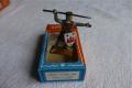 Chevalier écusson, javeline starlux réf 6020 MOYEN ÂGE SOCLE OCRE PIEDS BLANC MARQUAGE CREUX VENDU DANS SA BOITE D'ORIGINE