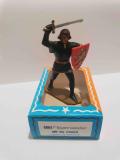SEIGNEUR COMBATTANT NOIR PEAU BRONZÉ AVEC ÉCU ROUGE ARMORIÉ STARLUX MOYEN AGE RÉF 6004 BISPIEDS NOIR CREUX SOCLE OCRE