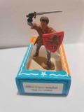 SEIGNEUR COMBATTANT AVEC ÉCU ROUGE PIEDS BLANC CREUX STARLUX MOYEN ÂGE RÉF 6004 TUNIQUE MARRON COTE GRISE