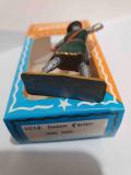 HOMME D'ARMES AVEC ÉPÉE PIEDS GRIS SOCLE OCRE STARLUX MOYEN ÂGE RÉF 6018 TUNIQUE VERTE ECU ROUGE BLEU VENDU DANS SA BOITE D'ORIGINE