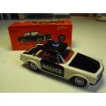 Modele strictement neuf en boite d'origine .Les deux personnages de policiers sont present dans la voiture et en parfait état .Décalques police parfaits.Modele trés rare dans cette version française.
