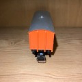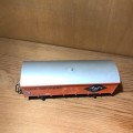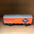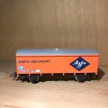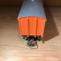 Modèle type sans frein. Caisse en matière plastique, couleur orange avec marquage SNCF et AGFA-GEVAERT.