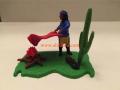 Mini diorama Timpo toysApache envoie de fumée avec Tunique bleu pantalon gris botte noire et couverture rougeAnnée 1976Western Indien